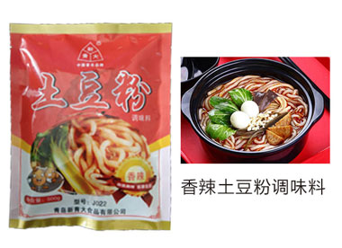 调料:五香粉、豆瓣、土豆粉调味料、配菜、麻椒油