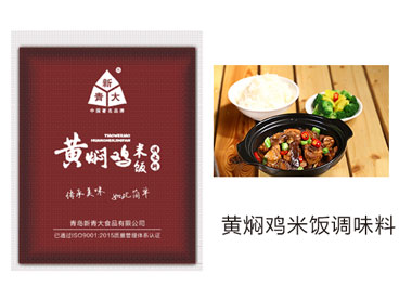 2、取140g的黄焖鸡米饭调味料,加入到500-550g的水中搅拌均匀,一起倒入放有鸡肉的高压锅中,再次搅均匀,点火加热,开锅煮制冒气时间5分钟、关火继续焖锅时间3分钟,放气;