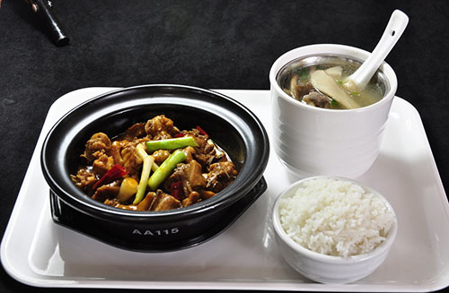 调料: 焖锅中添加(水500g、生姜20g、水发香菇20g)、砂锅中每份添加(青鲜椒20g、干辣椒2g、