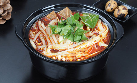 调料:五香粉、豆瓣、香辣土豆粉调味料、配菜、麻椒油 做法: 1、土豆粉开袋清水浸泡待用。配菜按实际需要处理好待用,麻椒油、盐、胡椒粉混合成麻椒粉待用; 2、锅入油大火烧热转小火,入豆瓣、五香粉、香辣土豆粉调味料慢炒至油红出香,倒入清水一碗, 转大火烧沸,按配菜性质先后下入配菜及土豆粉煮熟; 3、把最先调好的麻椒粉撒上去。