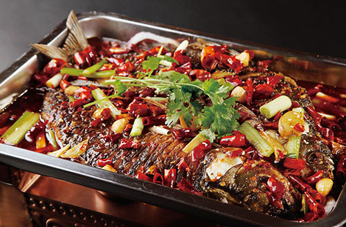 浇在鱼上面,再撒上芹菜、香菜、芝麻即可食用。